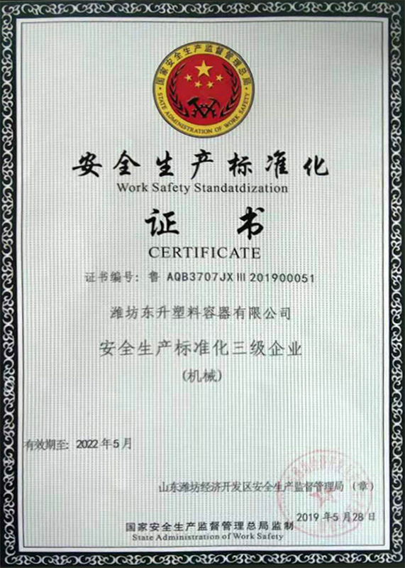 • 安全生產標準化證書-東升容器