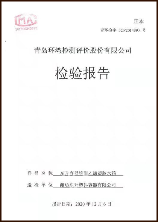 • 東升容器聚乙烯塑膠水箱檢驗報告